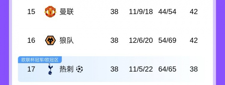 不陪你玩了上赛季第15曼联2轮1分第16 第17热刺开局连胜0失球
